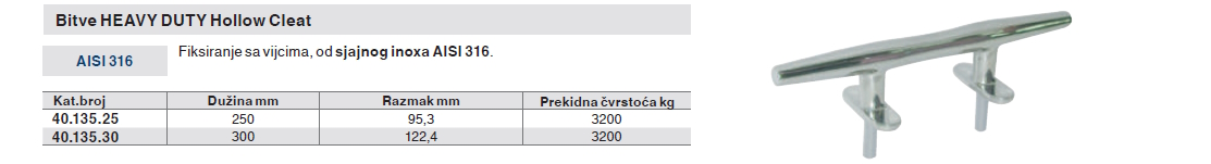 O proizvodu bitva HEAVY DUTY Hollow Cleat - inox, fiksiranje sa vijcima, 300 mm