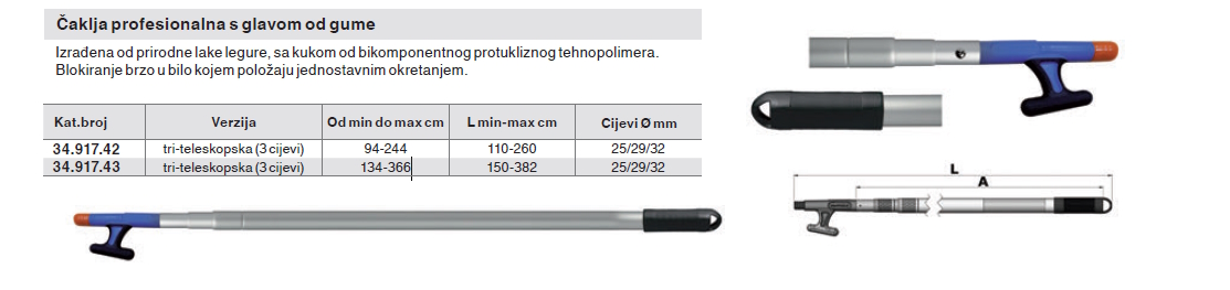 O proizvodu čaklja profesionalna s glavom od gume - triteleskopska, 110-260 cm