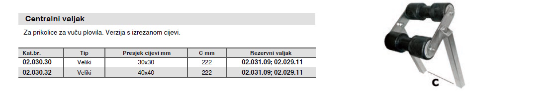 O proizvodu centralni valjak veliki 30 x 30 mm, 222 mm