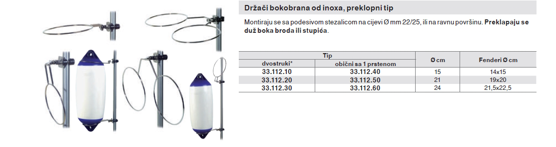 Montiraju se sa podesivom stezalicom na cijevi Ø mm 22/25, ili na ravnu površinu. Preklapaju se duž boka broda ili stupića.