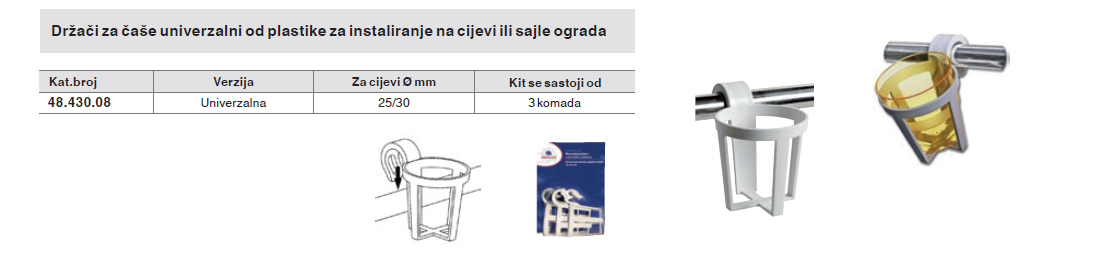 Držači za čaše univerzalni od plastike za instaliranje na cijevi ili sajle ograda