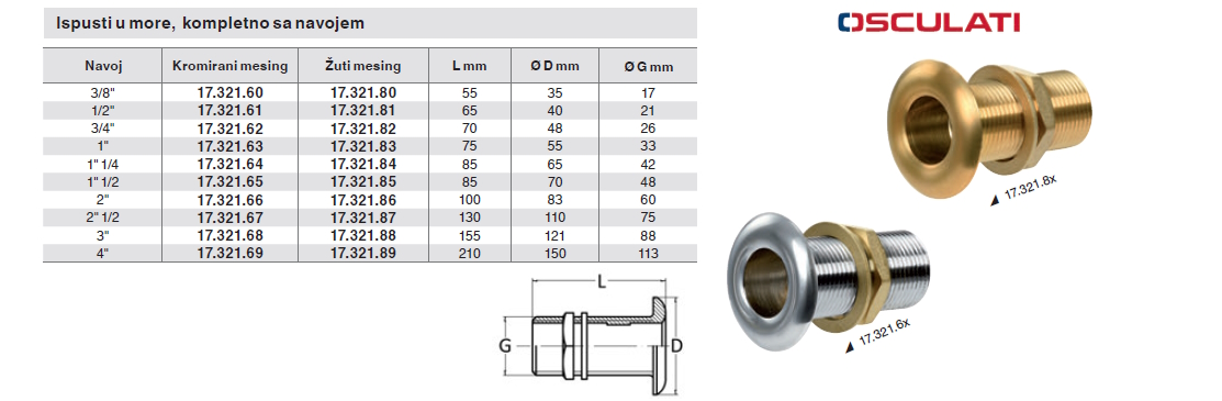 O proizvodu ispust u more, sa navojem 2'' - žuti mesing