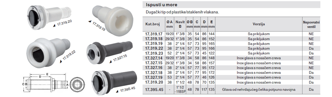 Specifikacija za Ispust u more sa inox glavom i nosačem cijevi sa nepovratnim ventilom