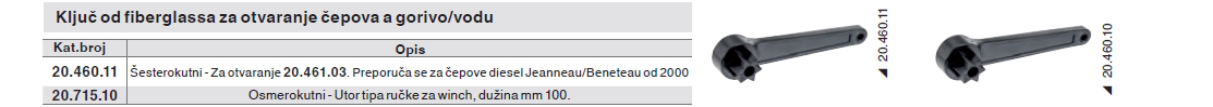 Specifikacija za Ključ od fiberglassa za otvaranje čepova za gorivo/vodu