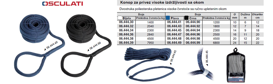 Specifikacija za Konop za privez visoke izdržljivosti sa okom