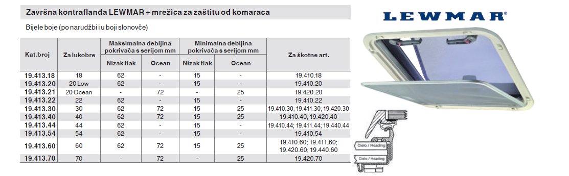 O proizvodu kontraflanđa + mrežica za palubni prozor Lewmar 40