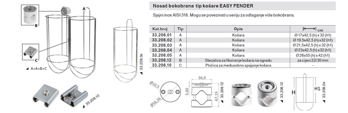 Sjajni inox AISI 316. Mogu se povezivati u seriju za odlaganje više bokobrana.