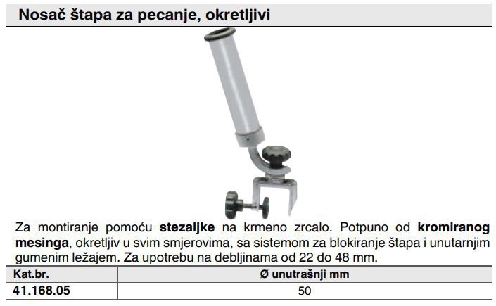 Specifikacija za nosač štapa za pecanje, okretljivi - krom. mesing