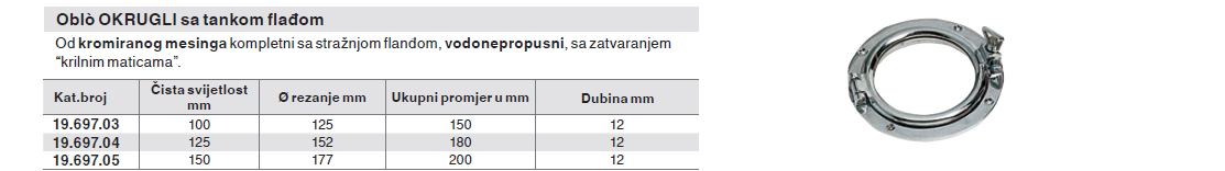 O proizvodu bočni okrugli prozor sa tankom flanđom - krom. mesing 180 mm