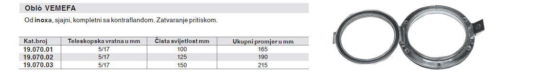 Od inoxa, sjajni, kompletni sa kontraflanđom. Zatvaranje pritiskom.