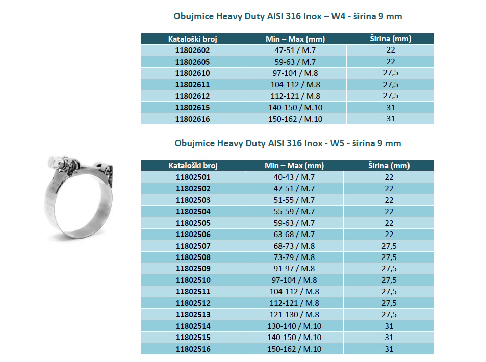 O proizvodu obujmica HEAVY DUTY AISI 316 inox 47-51 /M.7 W4