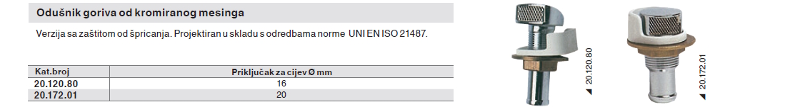 Specifikacija za Odušnik goriva od kromiranog mesinga