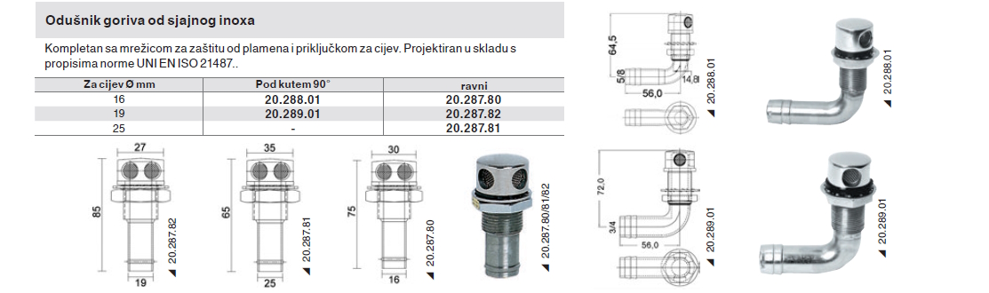 O proizvodu odušnik goriva sjajni inox ravni 16 mm RINA