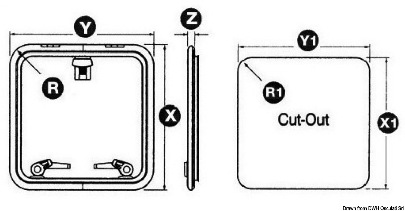 S izbočenjem od samo 25 mm iznad palube. CE odobren za AREA 2. Opremljen vanjskim ručkama za otvaranje s palube i mehanizmom za zaključavanje u bilo kojem položaju, čak i pri otvaranju od 95°. Izrađen od anodiziranog aluminija za zaštitu od korozije, s zakrivljenim profilom za veću čvrstoću. Za veće količine moguće je dobiti završnu obradu u bijeloj boji ili polirani aluminij s efektom ogledala.