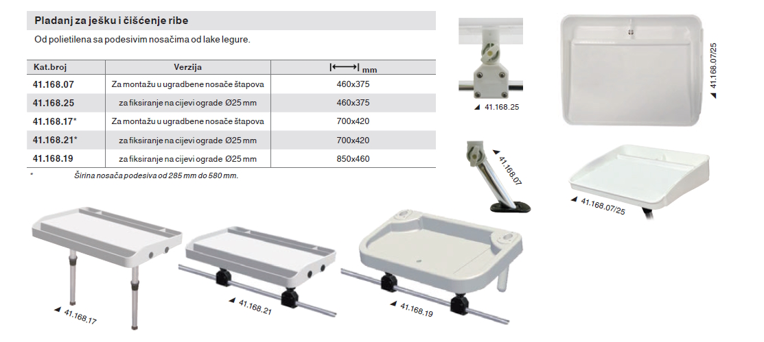 O proizvodu pladanj za ješku i čišćenje ribe - instaliranje na nosače štapova, 460x375 mm