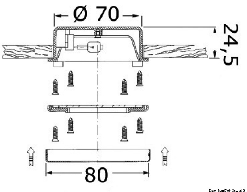 Tijelo od tehnopolimera, okvir od inoxa. Leća od mat kaljenog stakla. Žarulja nije uključena.