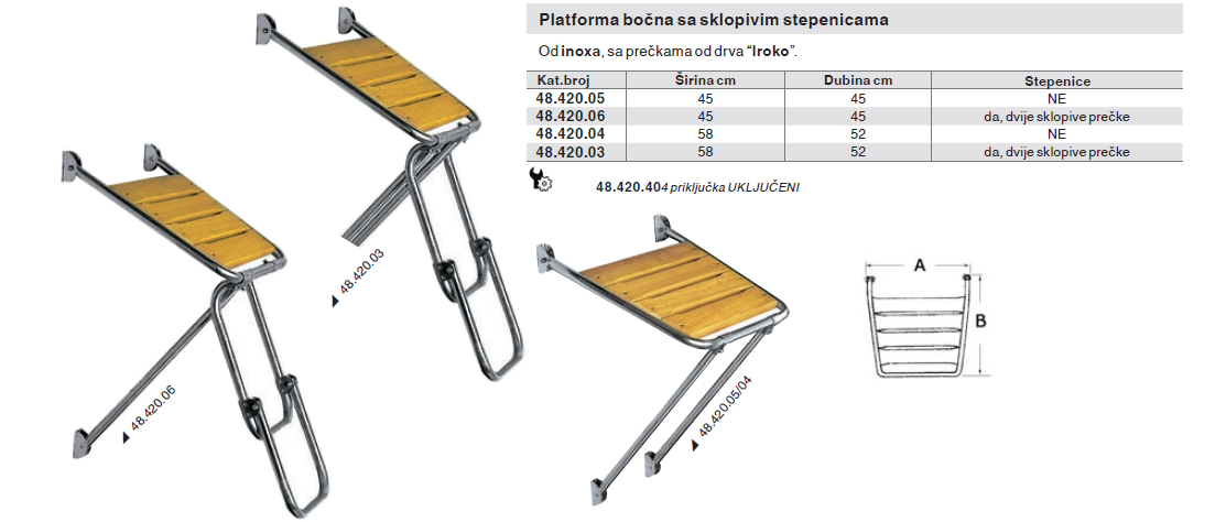 Od inoxa, sa prečkama od drva “Iroko”.