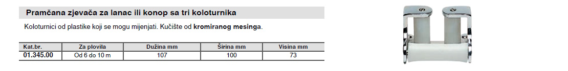 Specifikacija za Pramčana zjevača za lanac ili konop sa tri koloturnika