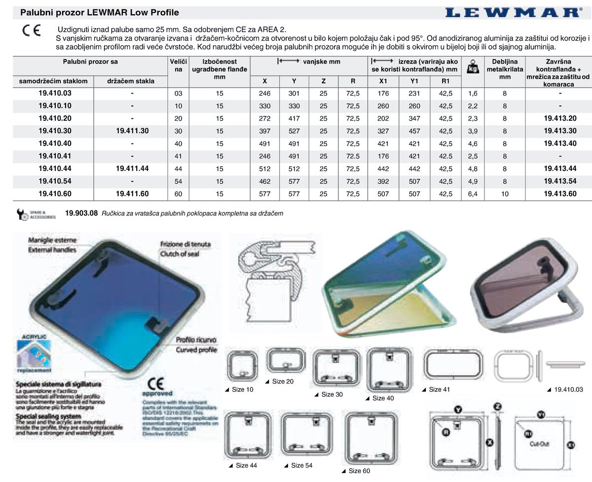 Specifikacija za palubni prozor Lewmar Low Profile s držačem 44 #399440303