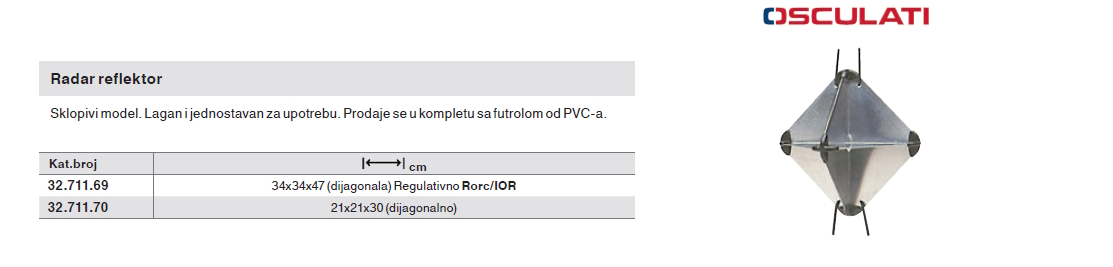 O proizvodu radar reflektor - sklopivi, 21x21x30 cm