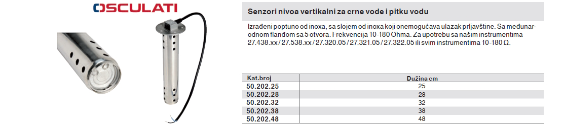 Specifikacija za Senzor nivoa vertikalni za crne vode i pitku vodu