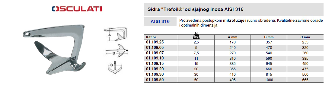 O proizvodu sidro Trefoil od inoxa 30 kg