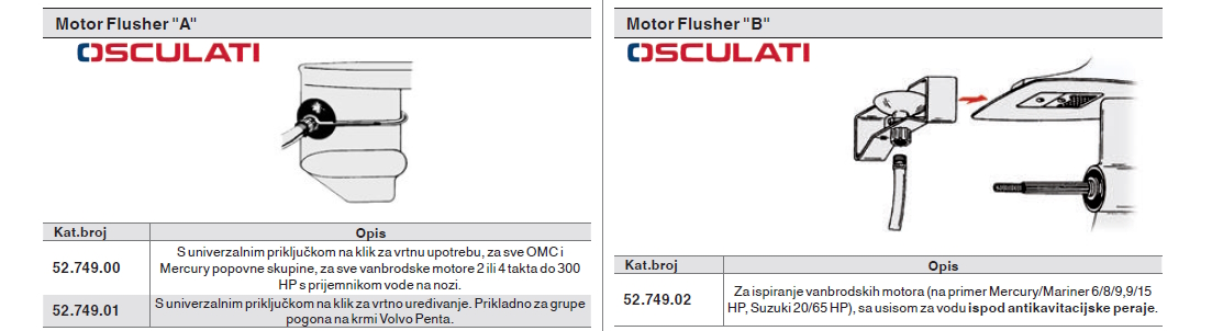 O proizvodu slušalica za ispiranje motora - Motor Flusher ''A'', za noge OMC i Mercury