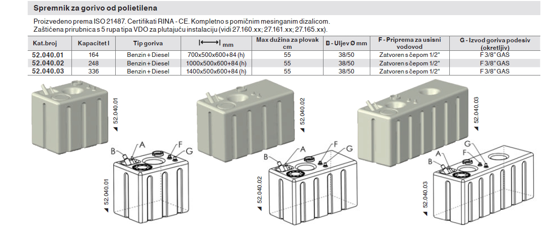 Specifikacija za Spremnik za gorivo od polietilena s certifikatom RINA