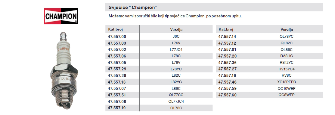 O proizvodu svjećica ''CHAMPION'' - RV15YC4