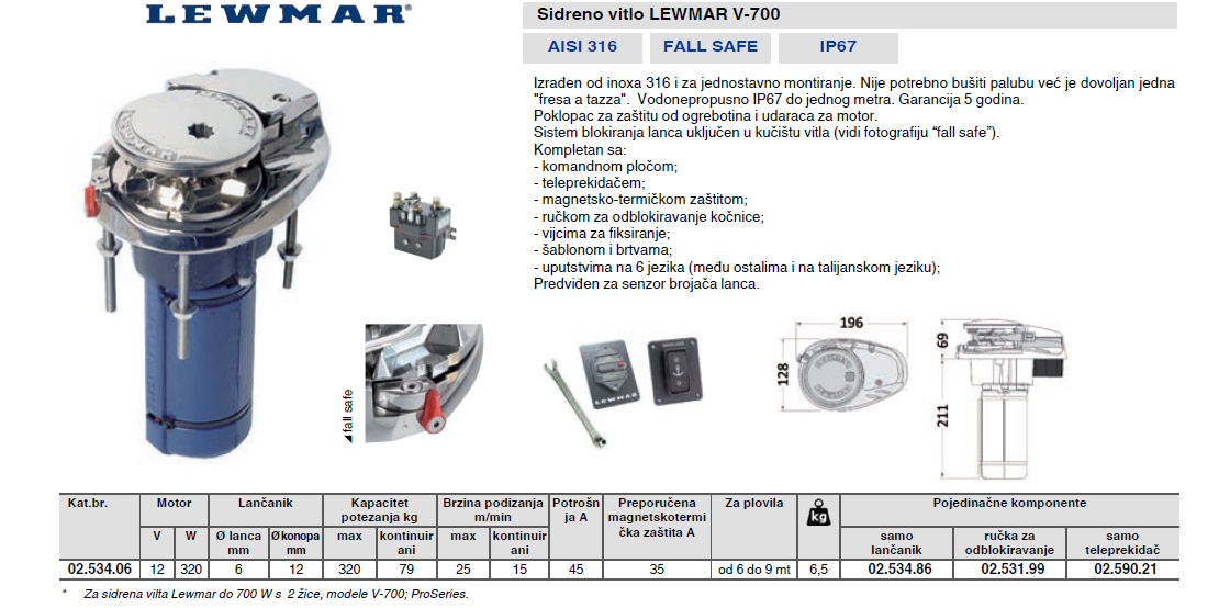 Specifikacija za teleprekidač za sidrena vitla Lewmar do 700W - Proseries