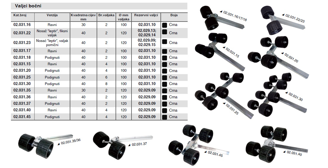 Specifikacija za valjak bočni - nosač ''leptir'', fiksni 40 mm - 2 valjka