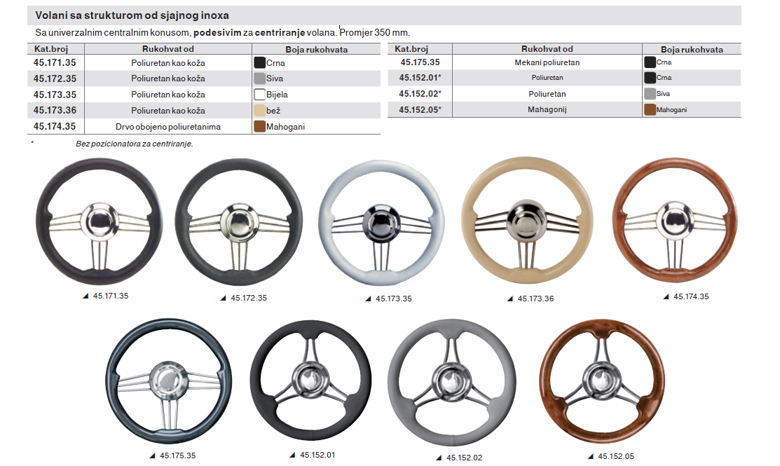 Specifikacija za Volan sa strukturom od sjajnog inoxa