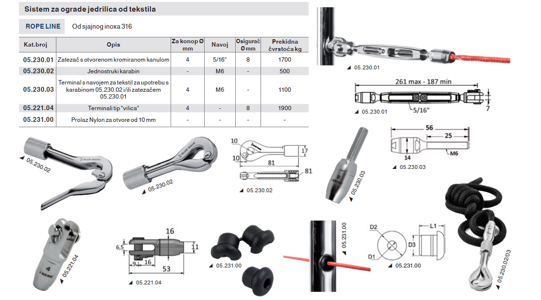 Zatezač s otvorenom kromiranom kanulom za ograde jedrilica