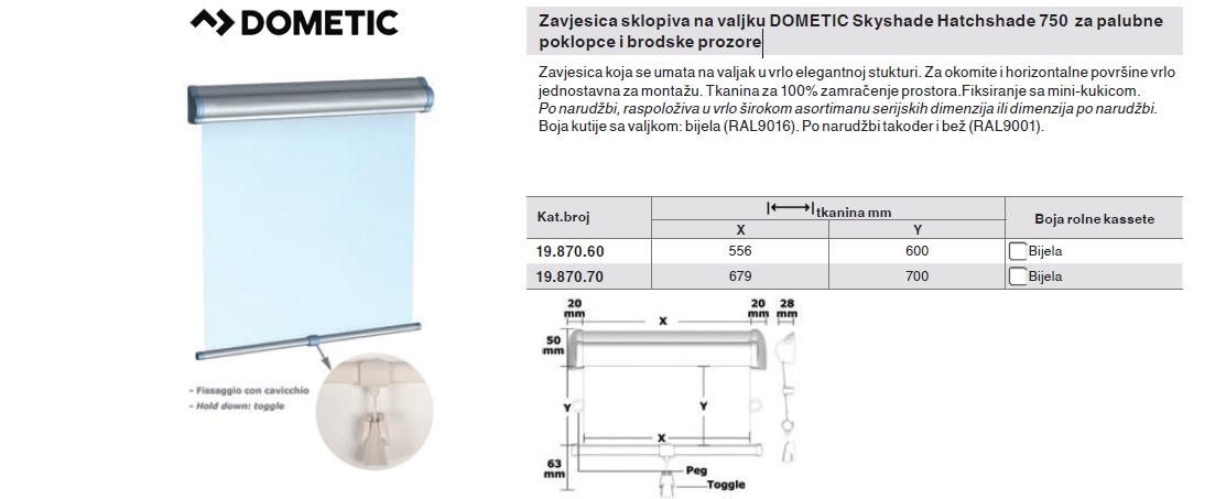 O proizvodu zavjesica DOMETIC Skyshade Hatchshade 750 - bijela 556x600 mm