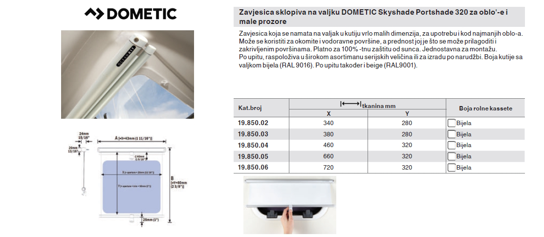 Zavjesica sklopiva na valjku Dometic Skyshade Portshade 320